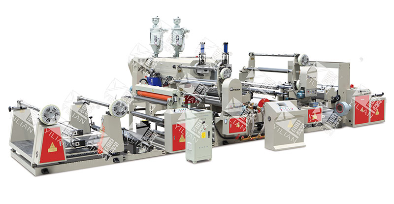 本系列设备以纸,塑膜,纺织布或铝箔为基材,通过流延,一次复合成二层,三层(夹心复合),广泛应用于食品包装,药品包装等各行业。如制作口杯,方便面碗,饲料包装袋,医用卫材,快餐盒,无纺布袋。PLC人机界面集中控制,机、电、气、一体化设计,高精度模头,高速高效混炼螺杆,快速换网,360度二放卷架,可配单挤出机,双挤出机,多挤出机实现多层共挤。